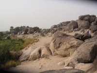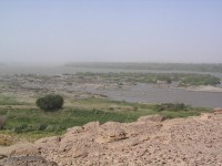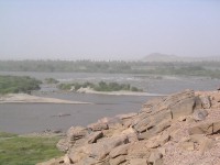 Kerma, le cours du Nil forme un coude ; le fleuve est barré par